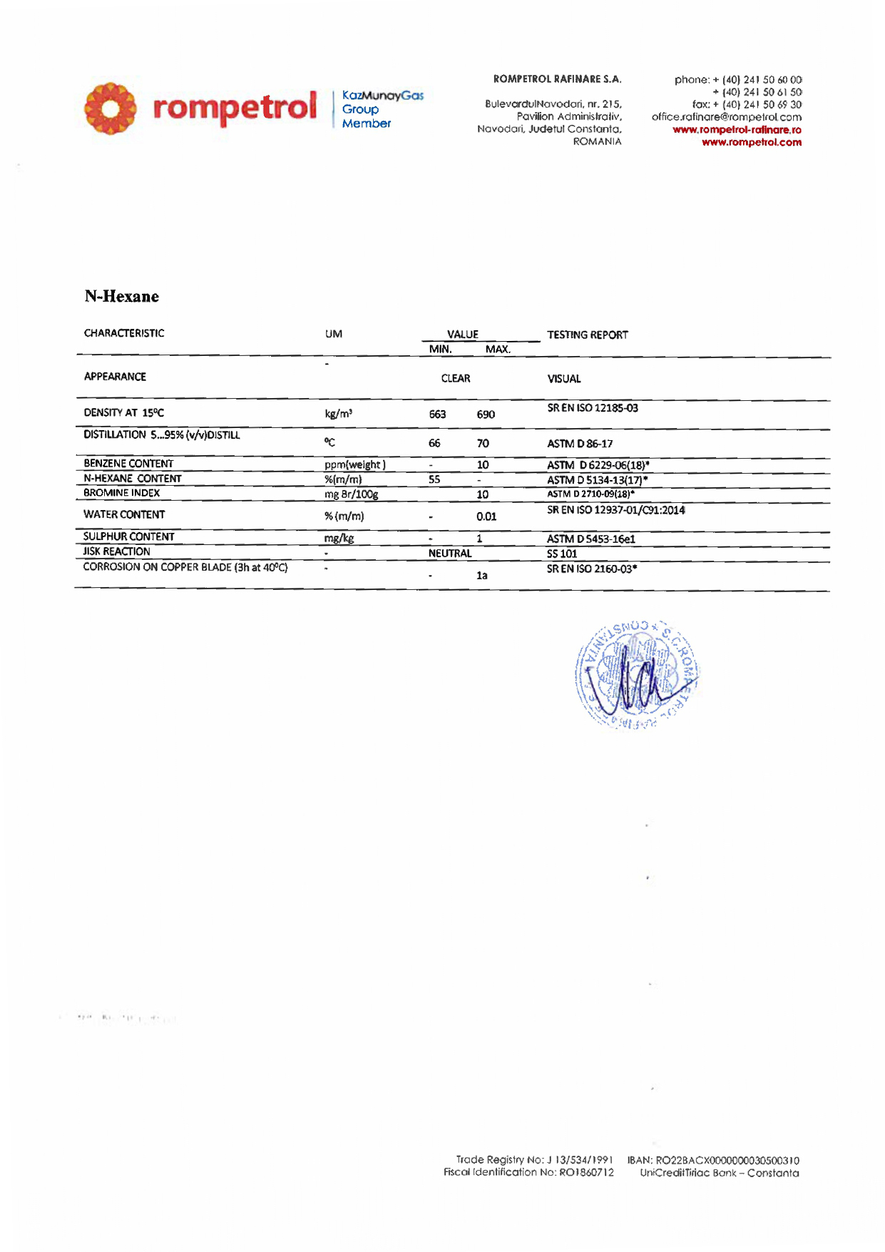 Rompetrol SE 75/115, Rompetrol SE 65/80 is a transparent liquid - oil distillation fractions consisting of mixtures of individual hydrocarbons (paraffinic, naphthenic, aromatic). The lower limit of the boiling point is the temperature of the beginning of boiling, the upper limit is the final temperature set by the technical requirements for the corresponding solvent.